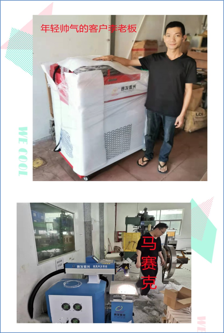 另一套1500FH 的手持焊接機,也順利出機珠海,年輕帥氣的李老板親自驗收并和咱們的設備合影,不得不說,在廣東,你永遠不能忽視一個穿拖鞋的人;希望這套設備,能讓李老板在焊接行業里如虎添翼。