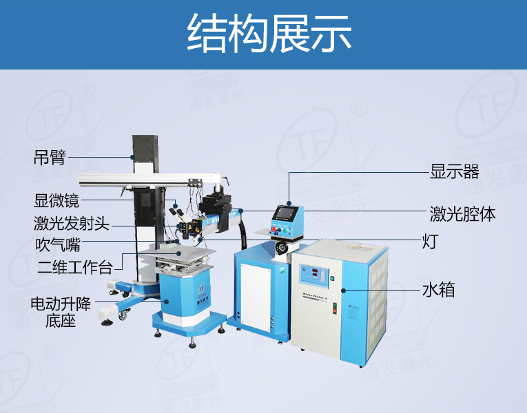 通發(fā)激光特大型模具TFL-200Ⅲ-DB吊臂激光焊機(jī),幫您解決大型汽車模具修復(fù)難題,不要模具移動,吊臂激光頭操縱桿控制運(yùn)動移動實(shí)現(xiàn)輕松激光修復(fù)20噸的模具,修復(fù)特大型模具利器。