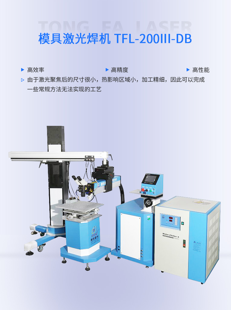 TFL-200Ⅲ-DB型模具激光焊機(jī)是通發(fā)激光公司在TFL-180Ⅲ的基礎(chǔ)進(jìn)行了改良,采用通發(fā)自主研發(fā)的二代精密單燈電源為燈泵浦驅(qū)動電源,操作更方便。主機(jī)具備激光頭手搖升降與工作臺按鈕電動升降實(shí)現(xiàn)焊接不同厚度模具的激光焊加工。本款機(jī)型更適用于各類高精密注塑模具激光補(bǔ)焊,精密塑膠模具零件激光修補(bǔ),塑膠模具鈹銅零件激光燒焊;可對模具使用過程中出現(xiàn)的磨損進(jìn)行激光修復(fù);對機(jī)械加工失誤、電火花加工失誤,模具減膠設(shè)計(jì)變更等需要對模具修改,起到關(guān)鍵的作用,可彌補(bǔ)應(yīng)加工失誤造成的巨大損失。