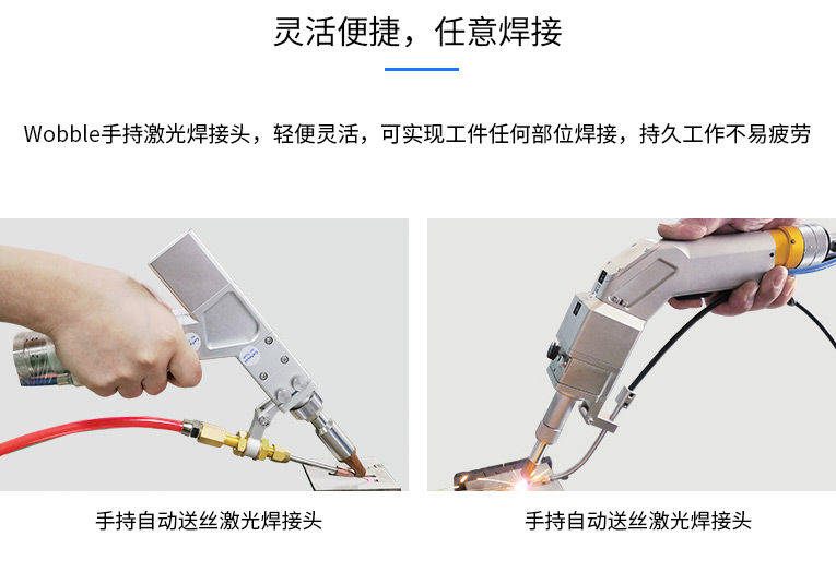 通發激光一體式手持式激光焊接機,用手持式焊接槍替代以前固定光路,手拿焊接,靈活方便,焊接距離更長,克服工作臺空間的局限性,工件尺寸不統一時無法自動焊接的情況下使用。主要針對大型工件、固定位置如內直角、外直角、平面焊縫焊接、焊接時熱影響區域小,變形小、而且焊接深度大,焊接牢固。是遠距離焊接大工件的較為靈活的全新的焊接工藝。